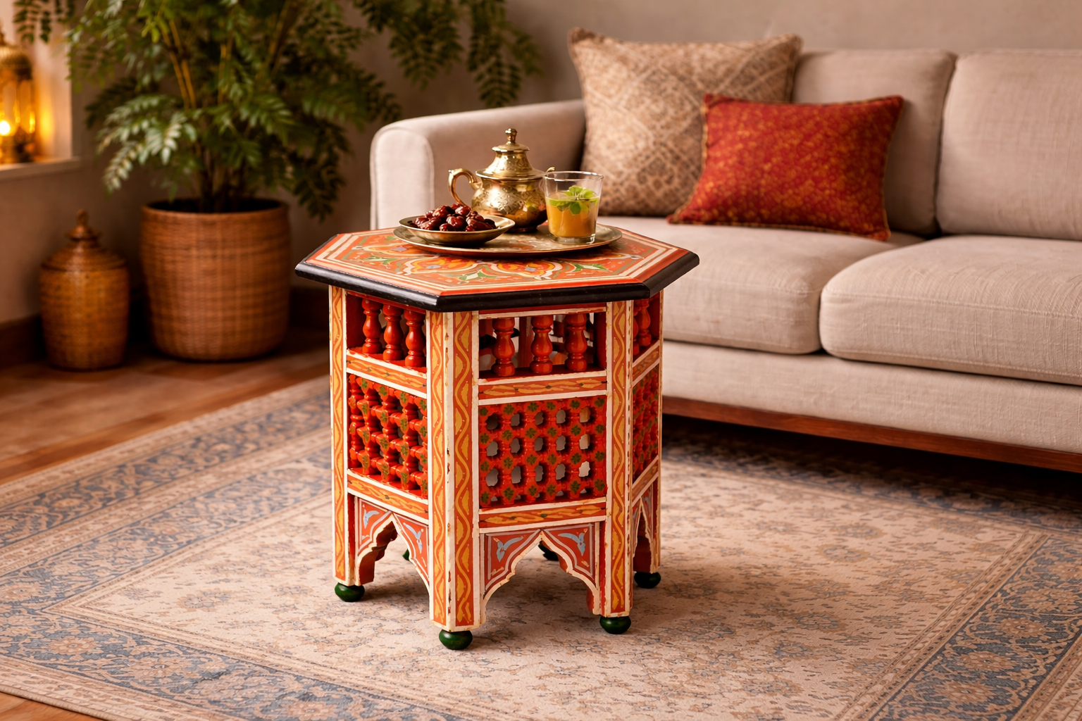 Hand-Painted Moroccan Style Lattice Accent Table