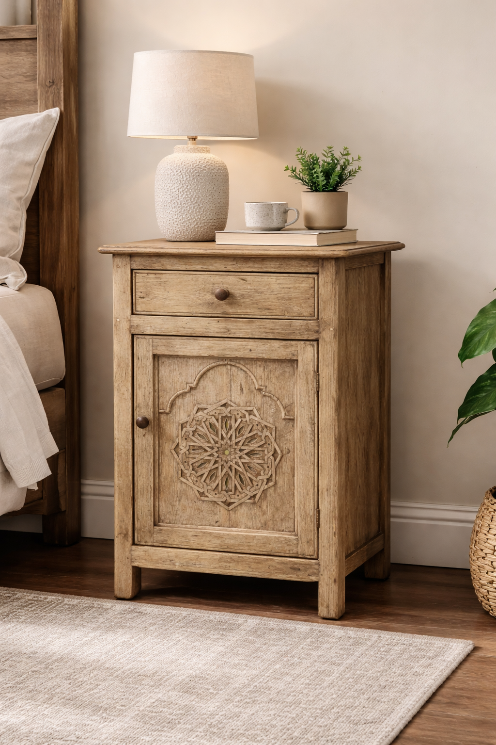 Rustic Solid Wood Bedside Cabinet with Drawer