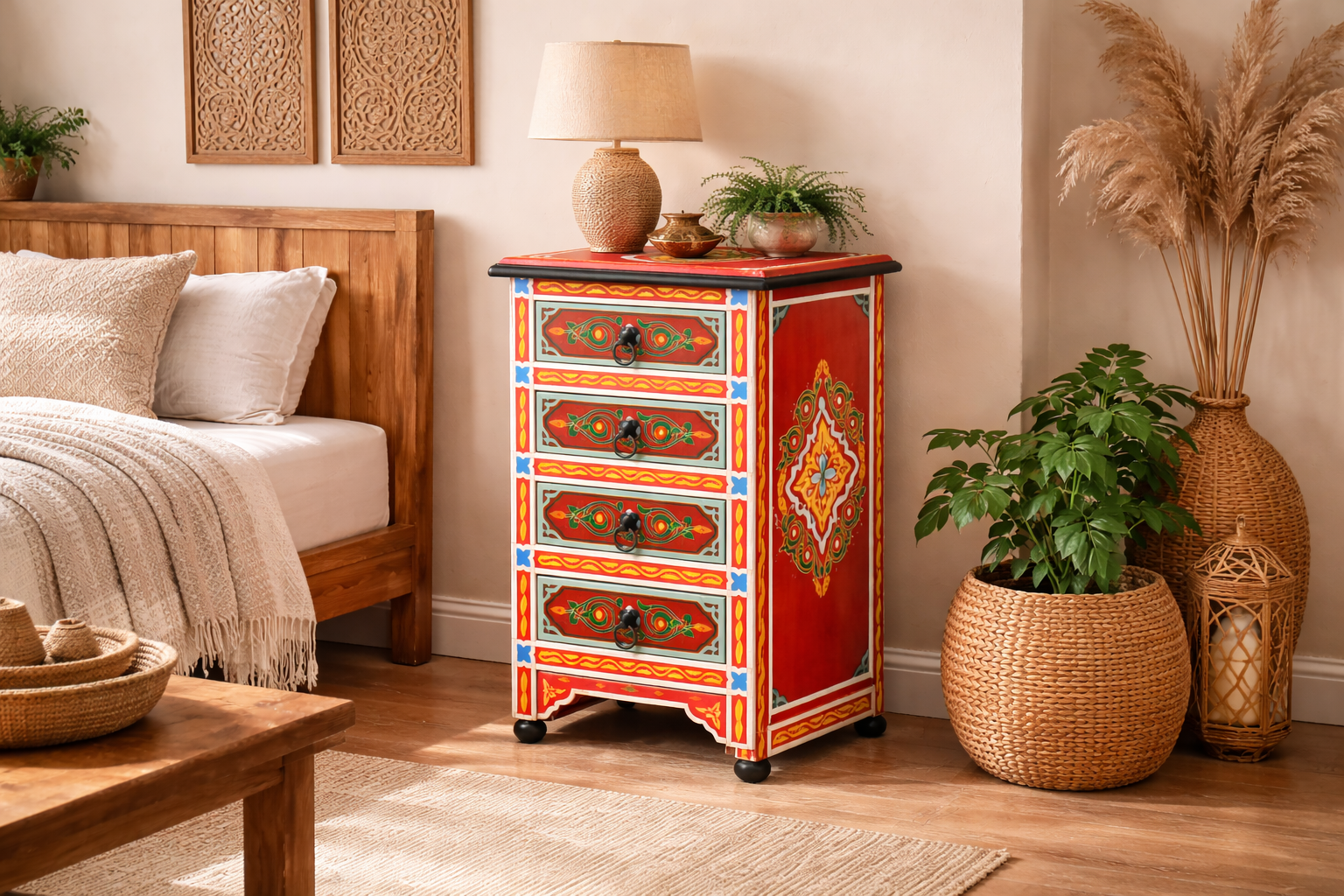 Marrakech crimson Hand-Painted bedside chest
